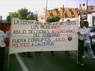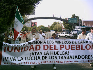 El dia de ayer acudí a la marcha en solidaridad con los mineros de Cananea y Pasta de Conchos. Les paso algunas fotos que tomé.