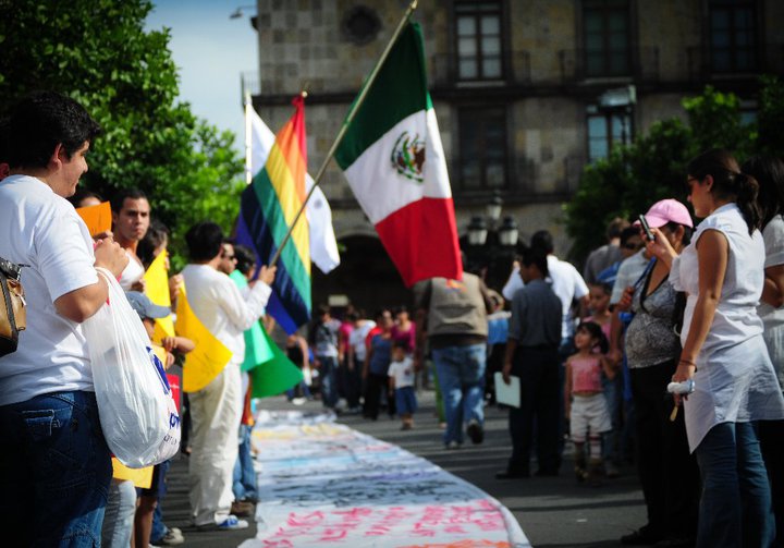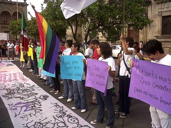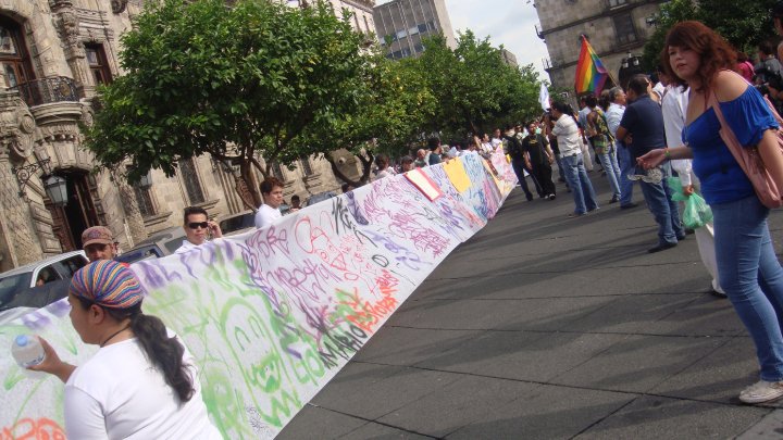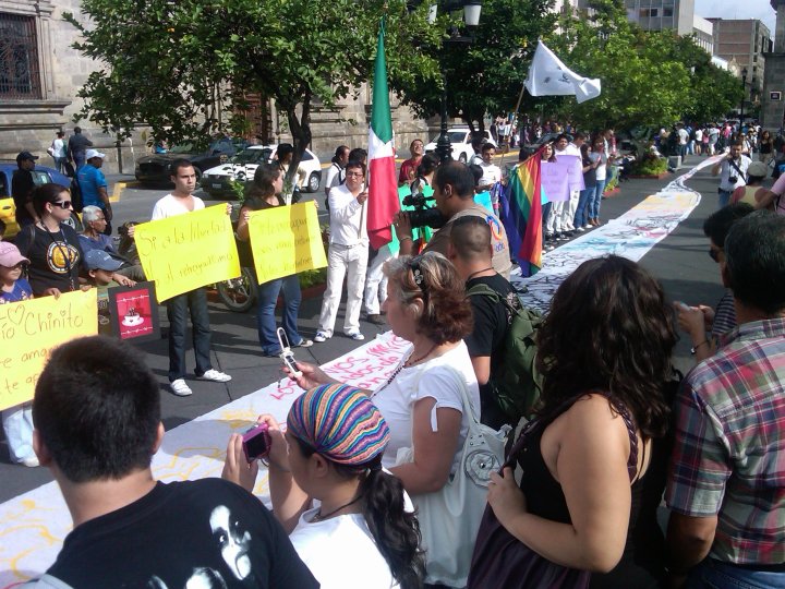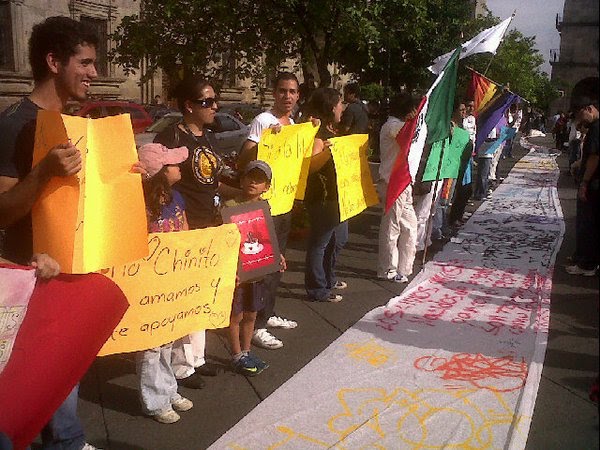 El movimiento progay en GDL mostró una vez mas su musculo numérico. cientos hicieron una larga cadena humana para rodear el palacio de gobierno y demandar se respete el Art. 130 constitucional.