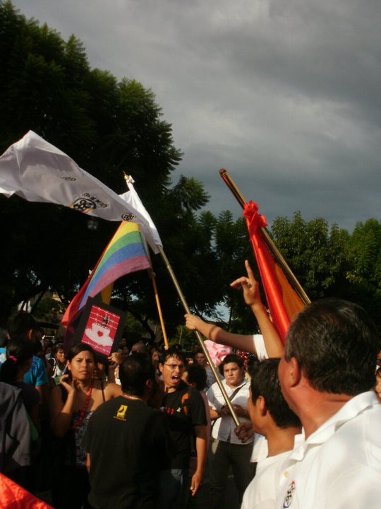 "si se pudo", "si se pudo" gritaron activistas ondeando banderas arcoiris, alrededor de las 7:30 de la tarde se dió por terminado el mitin y los asistentes comenzaron rápidamente a dispersarse.