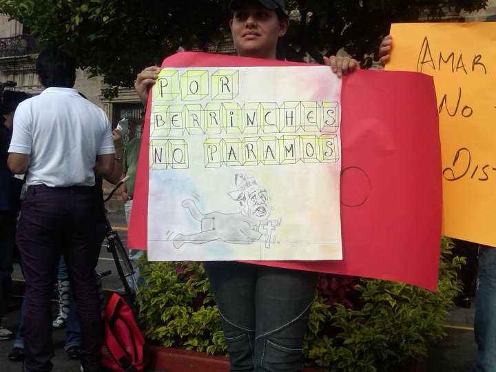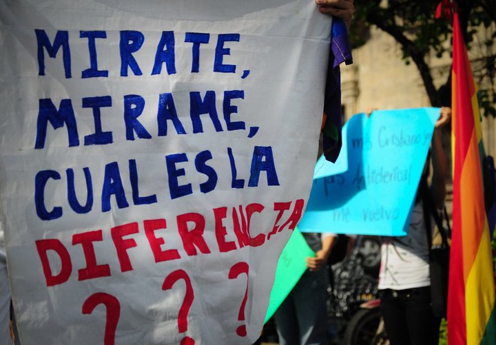 Mientras los grupos religiosos rezaban el rosario activistas de la diversidad sexual comenzaron a corear ruidosas consignas, "ni enfermos ni criminales simplemente homosexuales", "matrimonio y adopción para toda la nación", "derechos iguales a lesbianas y homosexuales" entre otras.