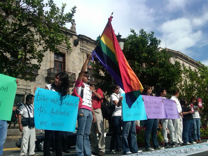 El movimiento progay en GDL mostró una vez mas su musculo numérico. cientos hicieron una larga cadena humana para rodear el palacio de gobierno y demandar se respete el Art. 130 constitucional.